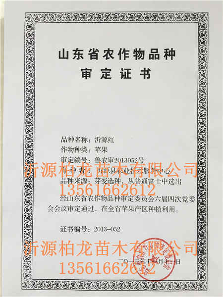 沂源柏龍苗木有限公司(柏龍苗木基地),建在魯山山麓8518核桃選育地,是沂源資質(zhì)深,規(guī)模大,經(jīng)驗足的專業(yè)實體苗木公司。早在70時代就為林業(yè)局定點苗木基地。2006年選育8518核桃苗。公司做事以誠信為宗旨,創(chuàng)新為目標,已逐步打造出柏龍系列的品牌苗,先后選育了750萬株8518核桃苗,遠銷21個省市。2012年隨市場需求,增育了文玩核桃苗(麻核桃),同時在縣政府指導下進行培育了“沂源紅”蘋果苗。“沂源紅”蘋果苗一經(jīng)問世,因其是短枝型,易管理,結(jié)果早,產(chǎn)量高,果色艷麗,條紅,口感爽脆,是名副其實的優(yōu)質(zhì)品種。